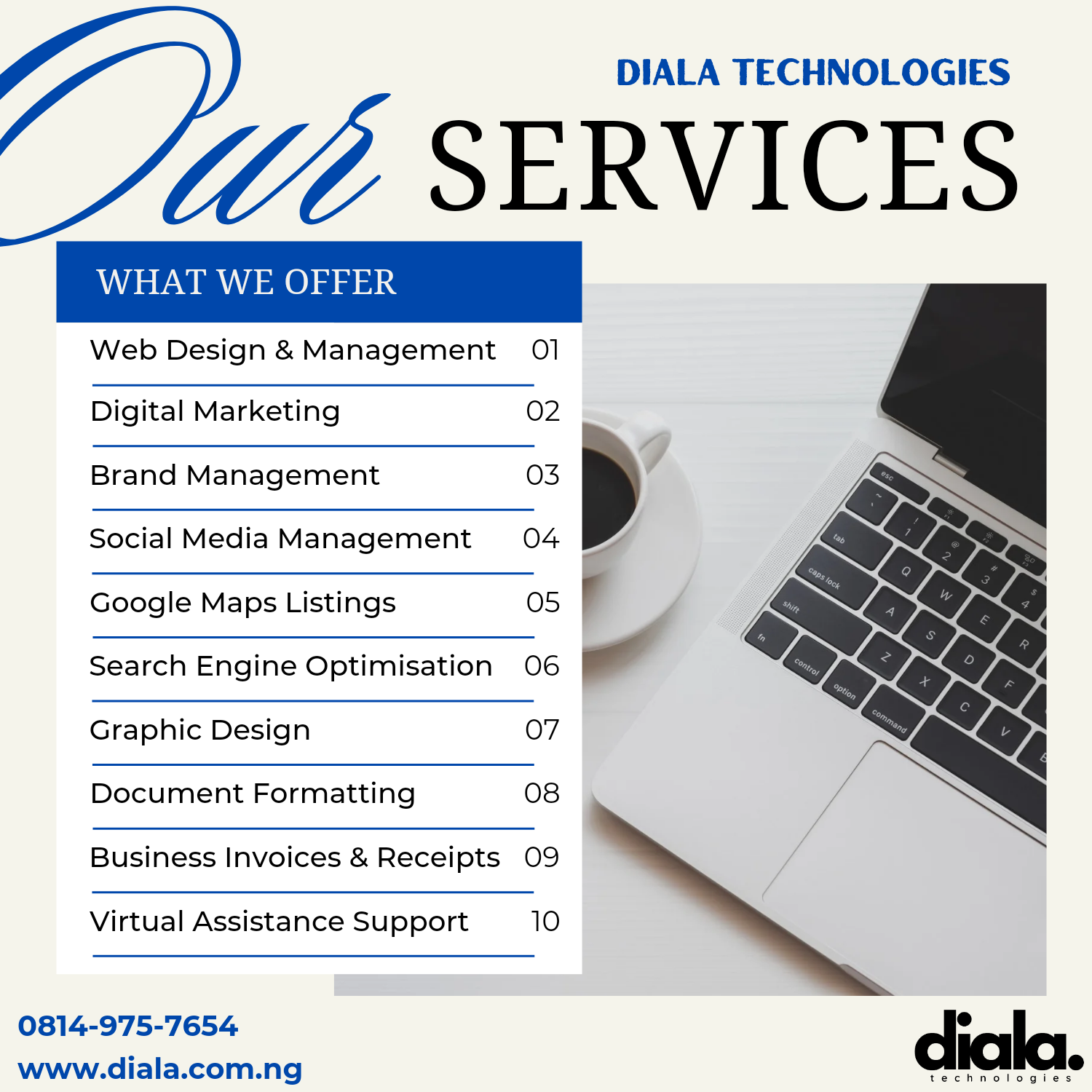 General WebsitesDIALA TECHNOLOGIES Welcome to Diala Technologies – Your Partner in Innovation! We’re a dynamic tech startup revolutionizing the way businesses